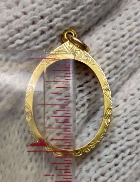 กรอบทองแท้มือสองคุณภาพดี สำหรับใส่ ล็อคเก็ต หรือ เหรียญ กว้างประมาณ 0.8 ซม สูง 1 ซม หนัก 2.05 กรัม ตอก 80 % และ ตอกตราร้านทอง |