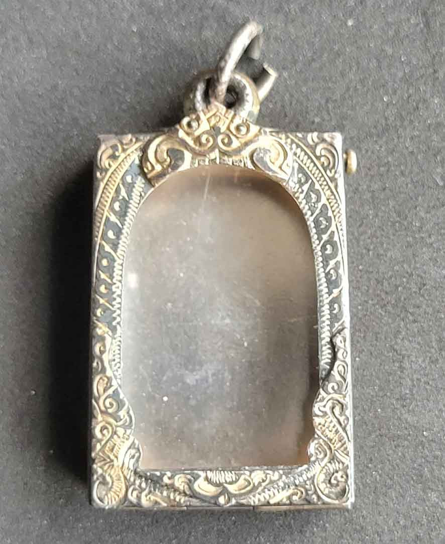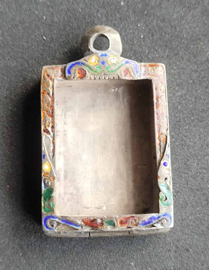 วัดใจ**ตลับใส่พระ เนื้อเงินแกะลายลงยาเก่า.....ตามสภาพครับ |
