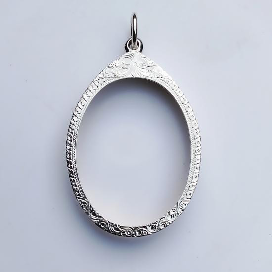 ตลับเงินแท้มือ2 เปิดหลังแกะลายสวยใส่เหรียญรูปไข่ |