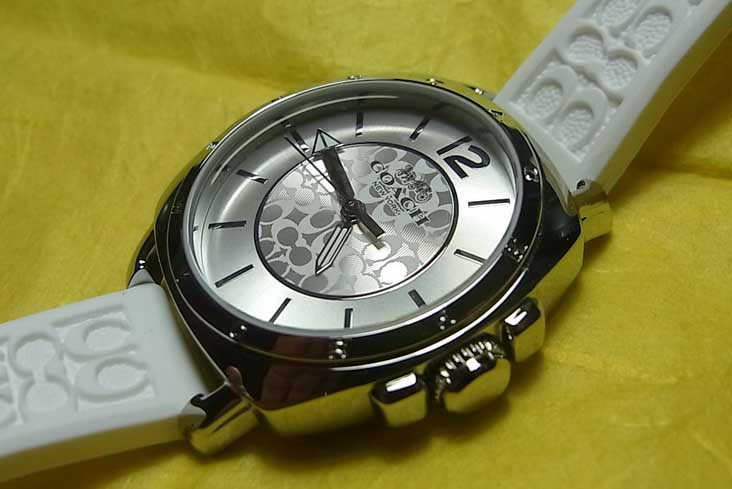 COACH นาฬิกาผู้หญิง รุ่น 14503146 หน้าปัดสีเงิน ขนาด 34 มม. สายซิลิโคนสีขาว |