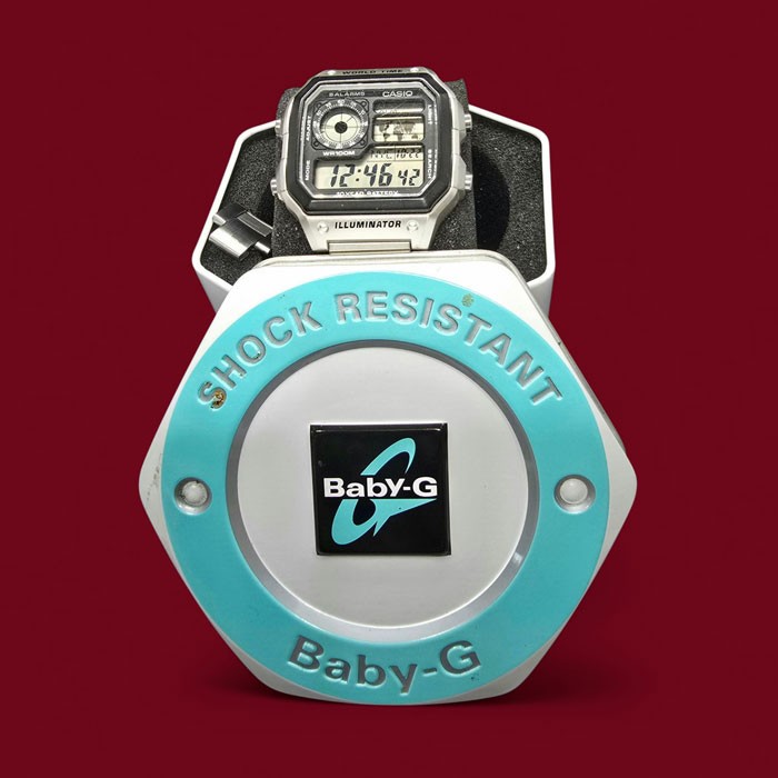 นาฬิกาวินเทจ ยี่ห้อ casio มีวันที่ภาพตามภาพแบ่งกันไปใช้เริ่มต้นที่ข้อแรก |