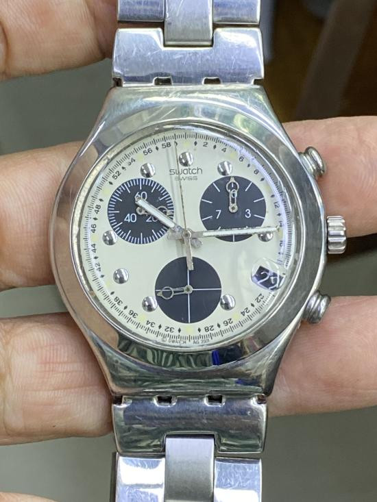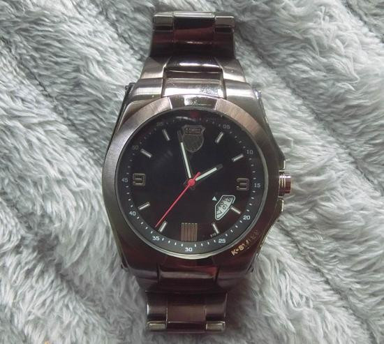 นาฬิกา KSWISS เรือนสแตนเลส สายเดิม ใช้ถ่าน แสดงเวลา-วันที่ สภาพ 80%++ กล่องเดิมยังอยู่ |