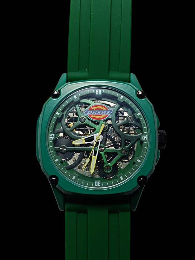 นาฬิกาข้อมือผู้ชาย ยี่ห้อ Dickies สีเขียว รุ่น 30 220M60LYXCL-469P3-31JX-A ขนาดตัวเรือน+เม็ดมะยม 44.4 มม ไม่เคยใช้ ซีลพลาสติกหลังเดิมๆ เก่าเก็บ กล่อง ใบ ถุง ครบ ระบบ mechanical movement กลไกแบบไขลาน |