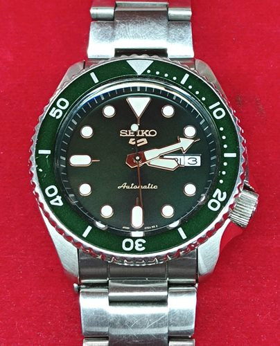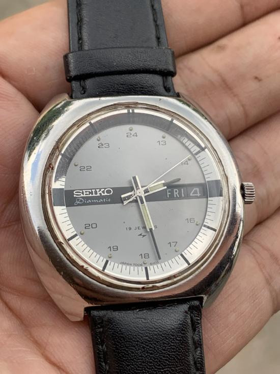 วินเทจ Seiko 5 Automatic 37มม.รวมเม็ด เดิมๆ หน้าปัดมีร่องรอยตามกาลเวลา เดินปกติพร้อมใช้วันที่เปลี่ยนปกติ ครับ |