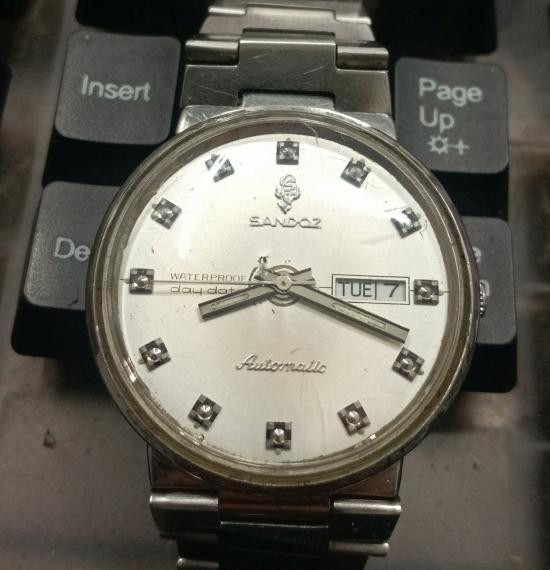 Sandoz automatic since1870 เลข 83328 ขนาด38 มม.วันที่ตั้งเร็วได้ เดินปกติ กระจกมีรอยตรงกลางจอ พิจารณาก่อนเคาะครับครับ |