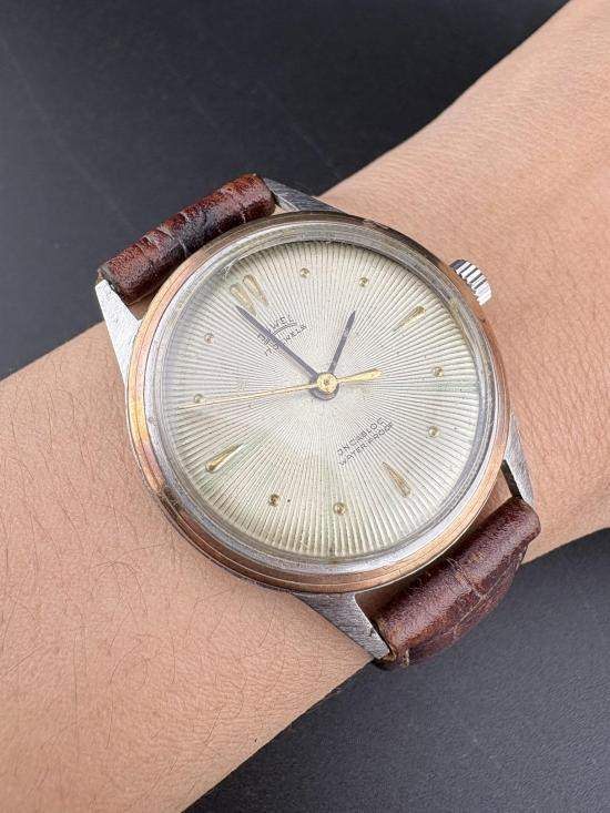วินเทจ Cadet 21 jewels crystal 2062 ขนาด 38 มม.ตัวเรือนหน้า14มม. สายเดิมยาว16ข้อเดินปกติ วันที่ตั้งเร็วหมุนกลับปกติพร้อมใช้ครับ |