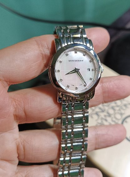นาฬิกาคุณผู้หญิง BURBERRY. หน้าปัดมุกสีชมพู หลักเพชรเล็ก สวยหรู มีระดับ ขนาด28 มิล |