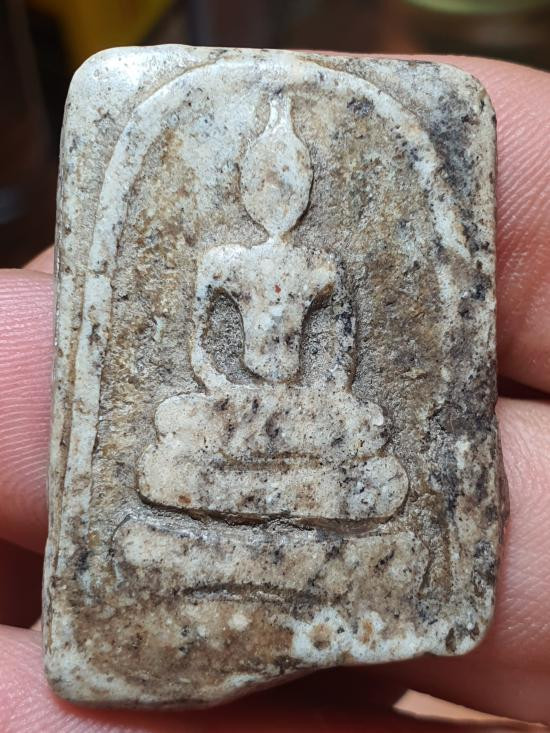 พระสมเด็จไม่ทราบที่เก่าดีมีรอยหักครึ่งติดกาวมาเนื้อแกร่ง(เหมามาครับ) |