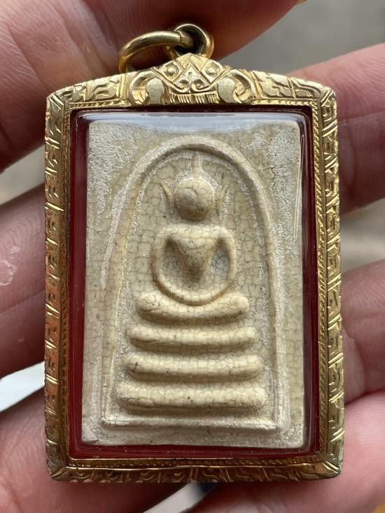 พระสมเด็จ ไม่ทราบที่ เลี่ยมกรอบเงินชุบทองอย่างดีคับ |