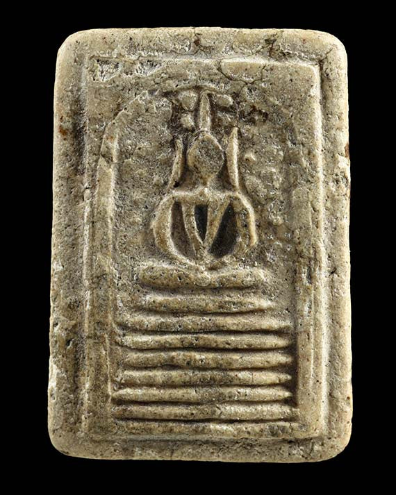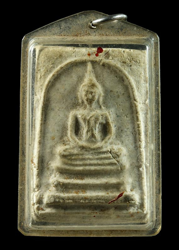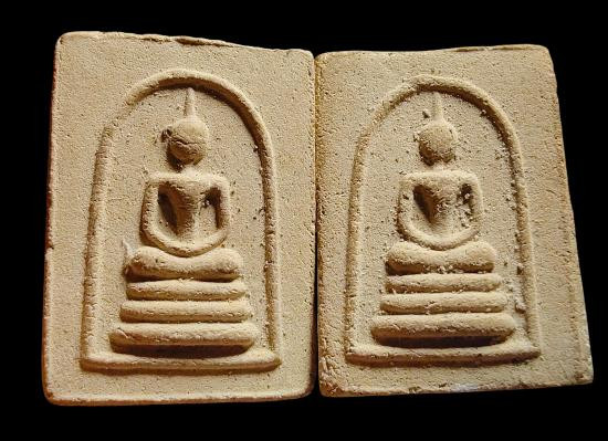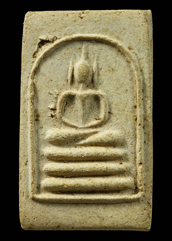 พระสมเด็จเนื้อผงด้านหลังมีรอยหมึกจางจางไม่ทราบที่ |