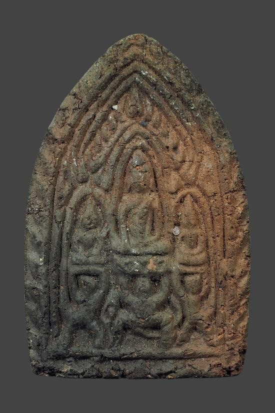 A7758.พระเนื้อดิน พิมพ์พระรอด ไม่ทราบที่ สวยครับ เคาะเดียวเเดง