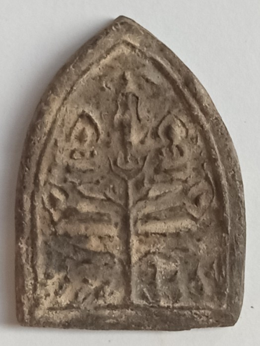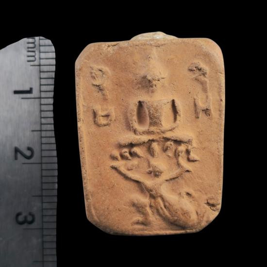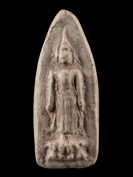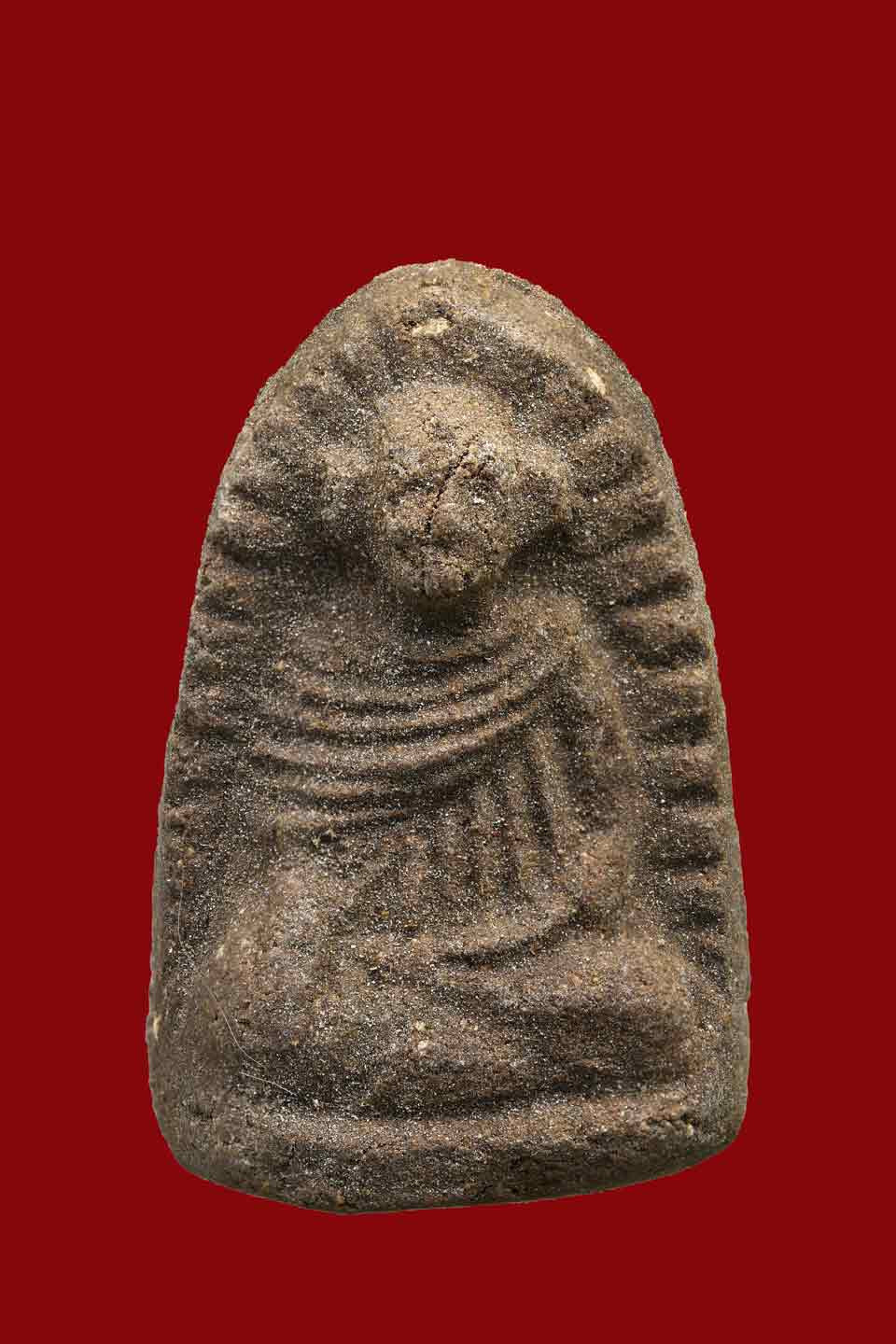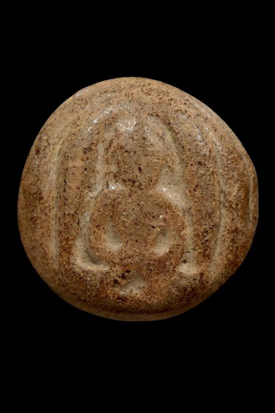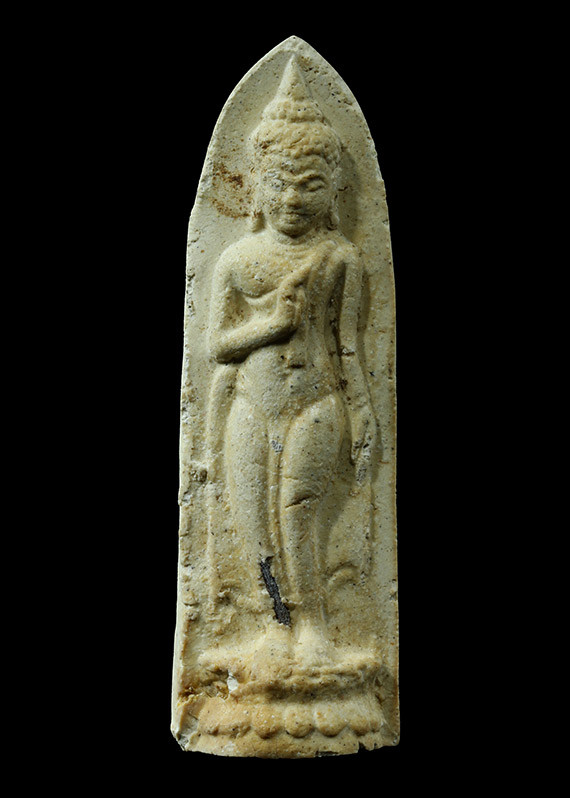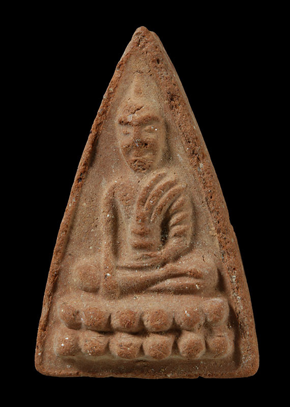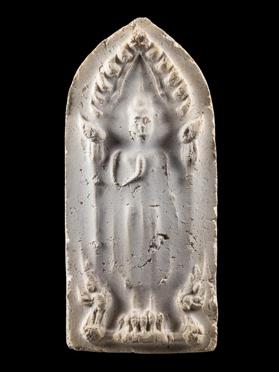 ((เคาะแรกแดง)) พระพิมพ์แหวกม่านลอยน้ำ เนื้อดินผสมใบลาน เนื้อหาดี ขอบข้างตัดปาด |