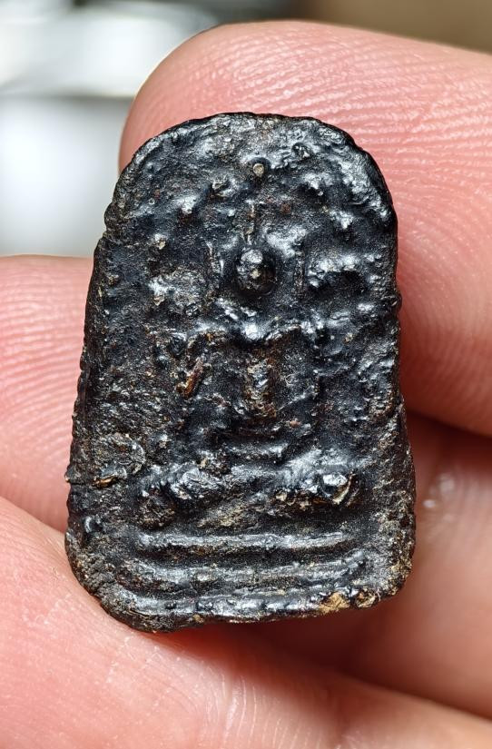 (ขออนุญาตลงใหม่มีคนปิดเล่นค่ะ) พระขุนแผนเนื้อดำ หลังมีจีวร มีรอยหมึก อ่านไม่ออกแล้ว เก่า ไม่ทราบที่