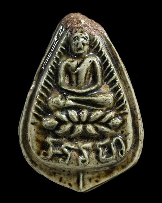 พระขุนแผนเคลือบไม่ทราบวัด มีปิ่นด้านบน |