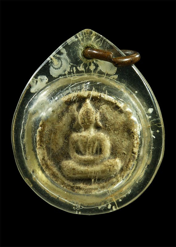 วัดใจ พระพุทธปางสมาธิ เนื้อผงใบลาน ไม่ทราบที่ครับ |