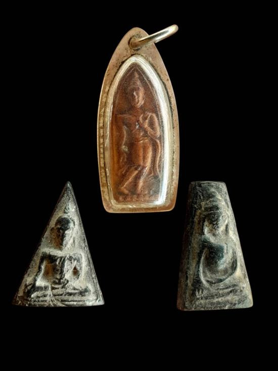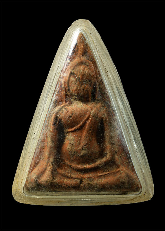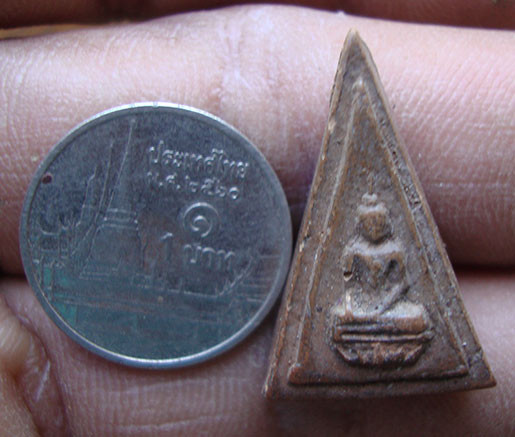 พระกรุ พิมพ์สามเหลี่ยม เนื้อผง ไม่ทราบที่ เนื้อเก่า ๆ หนึบๆ เลยครับ |