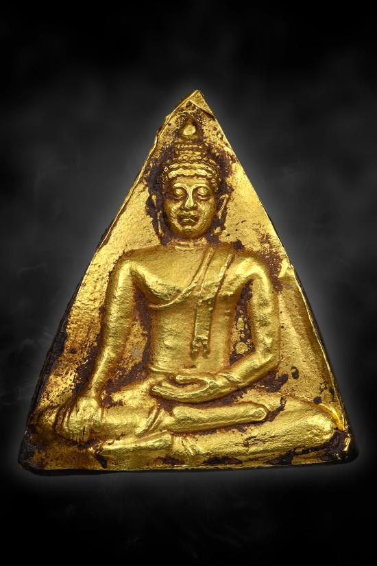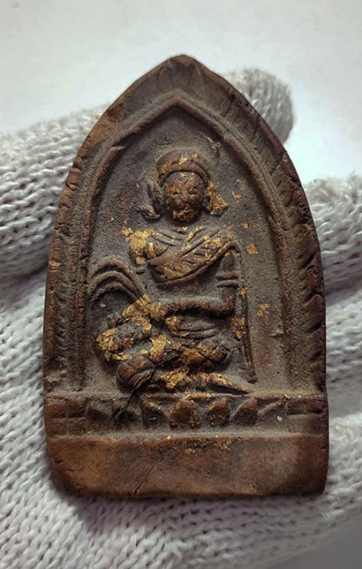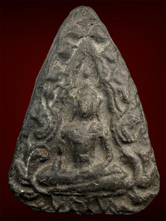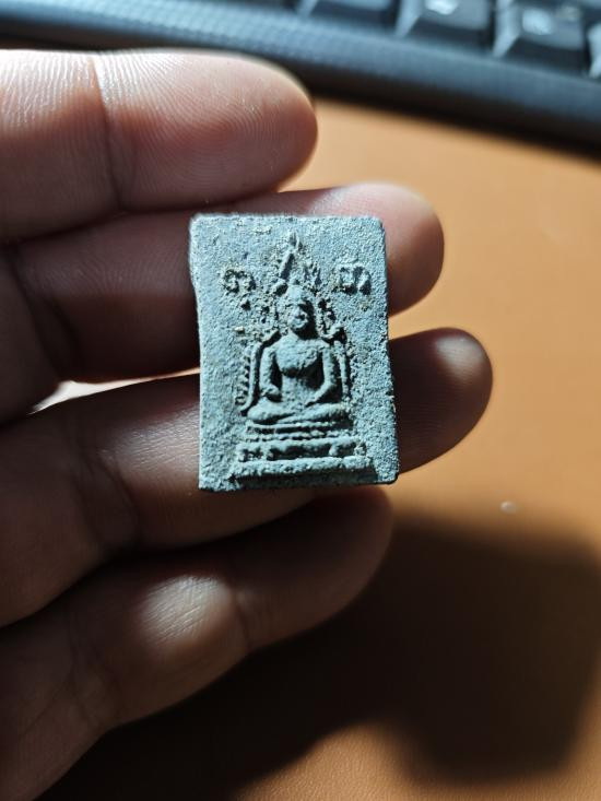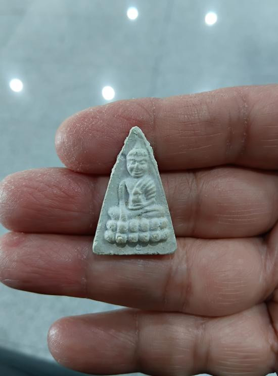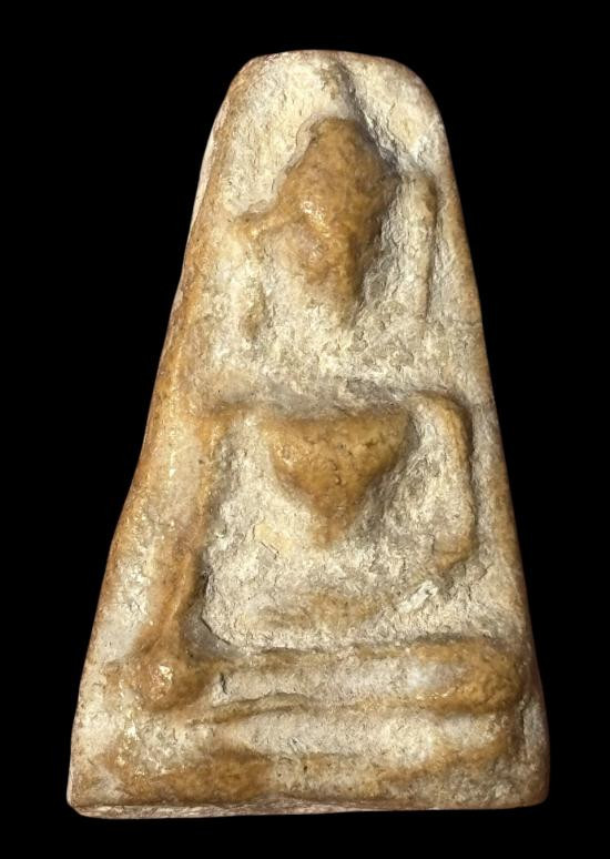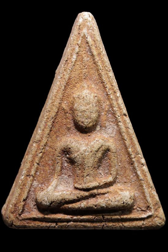พระสามเหลี่ยมเนื้อผสมว่านเก่าไม่ทราบที่ ได้บำบัดมาราคาเบาๆครับ |