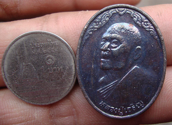 เหรียญผมไม่ทราบที่ครับ ขนาดใหญ่กว่าเหรียญสิบครับ พระบ้านผมเหมามาเยอะ วัดใจเท่าไหนเท่านั้นทุกรายการครับ |