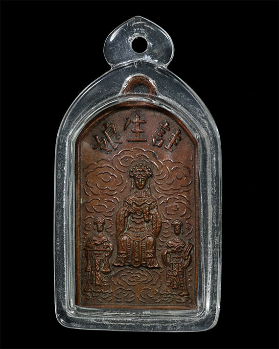 พระสังกัจจายน์ หลังยันต์ห้า นะโมพุทธายะ วัดเกาะสีชัง ชลบุรี เนื้อทองแดง |