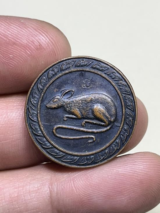 เหรียญกลมขนาดเล็ก (ประมาณเหรียญ 25 สตางค์) ตอกโค๊ต ร เนื้อทองแดง สภาพสวย ไม่ทราบที่ |