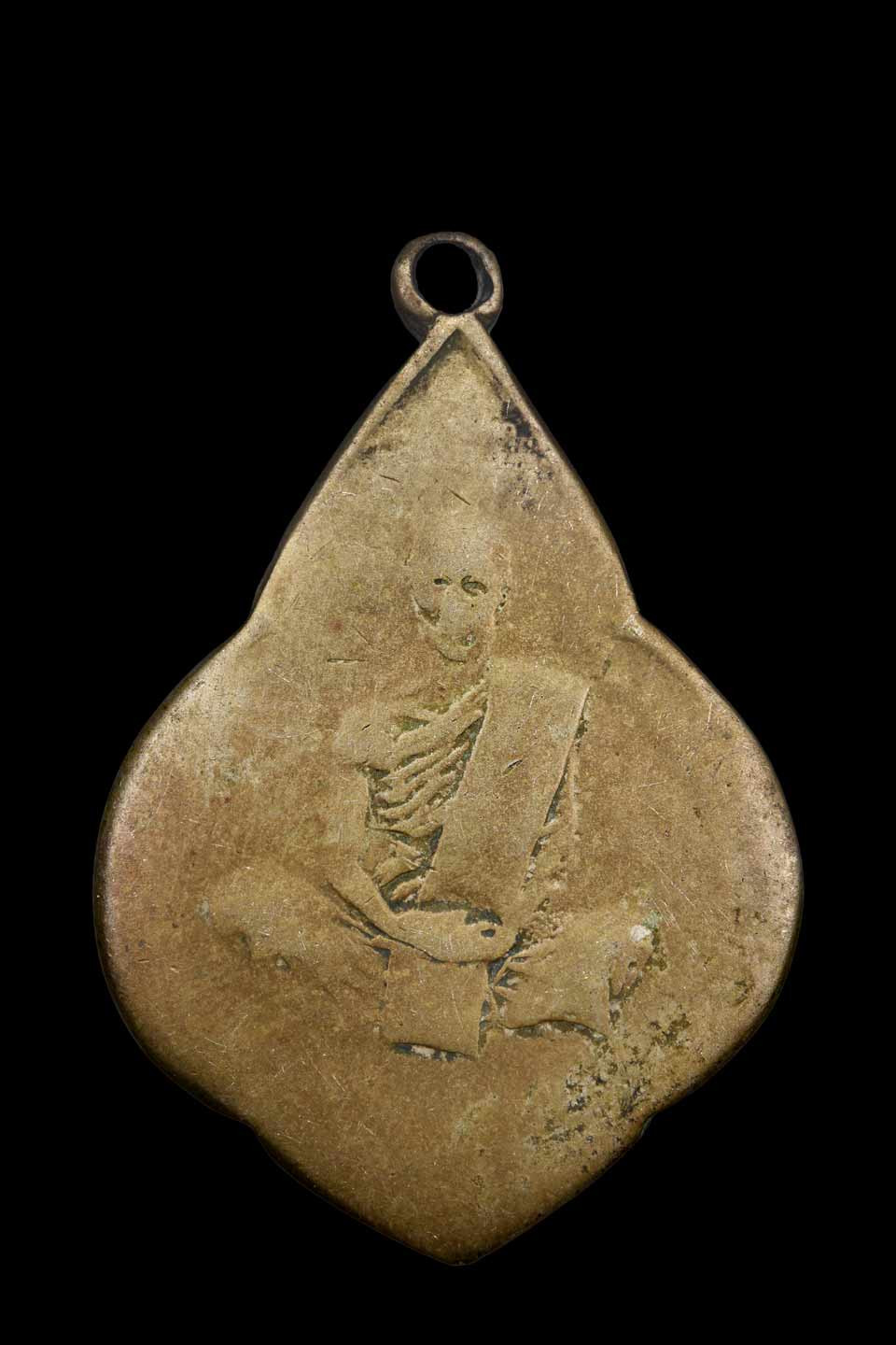 **100.** เหรียญใบสาเกหลวงพ่อโต หลังยันต์ ไม่ทราบที่ครับ |