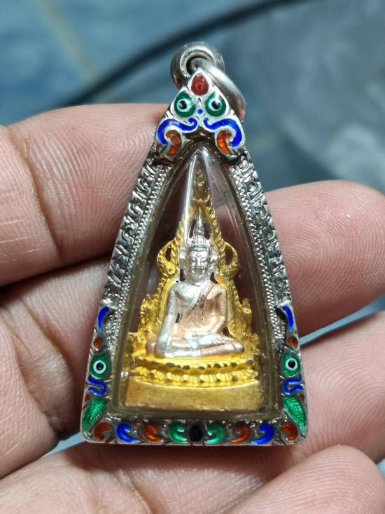 พระพุทธชินราช เนื้อสามกษัตริย์ เลี่ยมเงินลงยาสวยๆ ครับ |