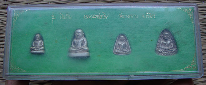 พระชุด 4 องค์ ไม่ทราบเนื้อ ตอกโค๊ต พร้อมกล่อง สวยครับ |