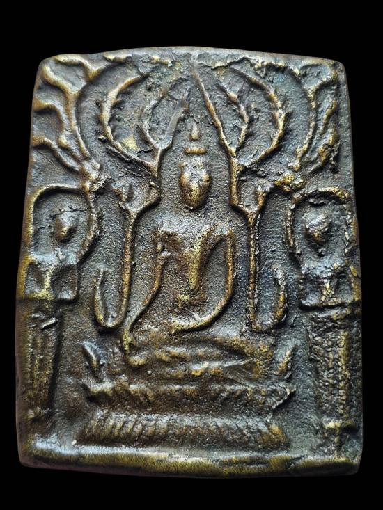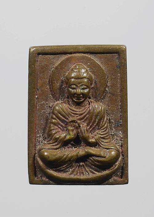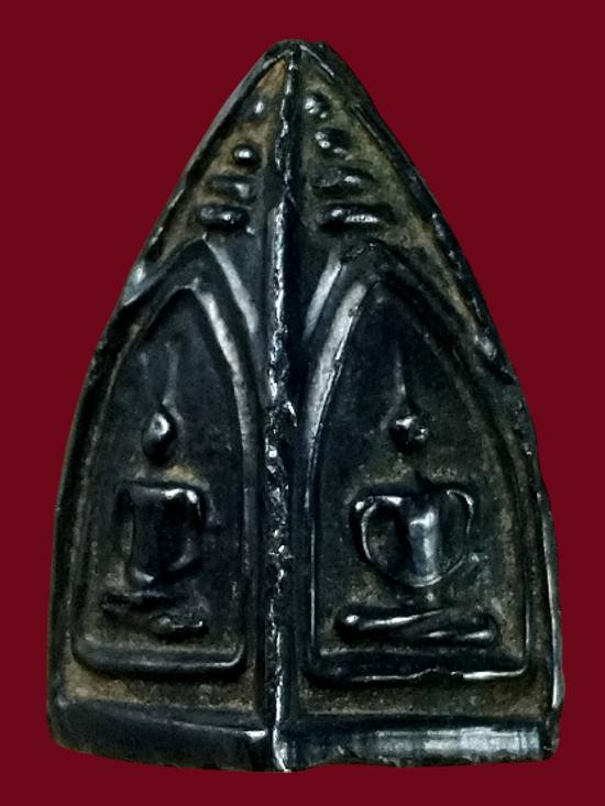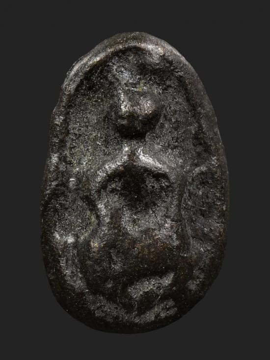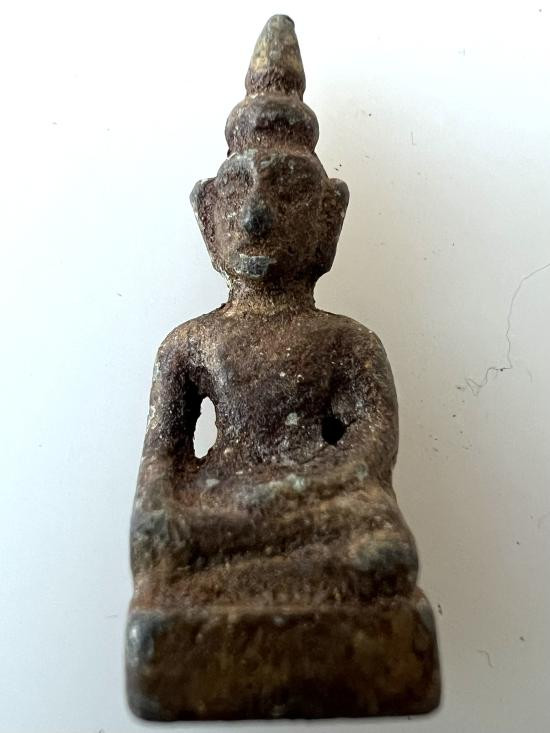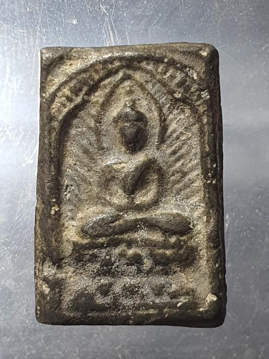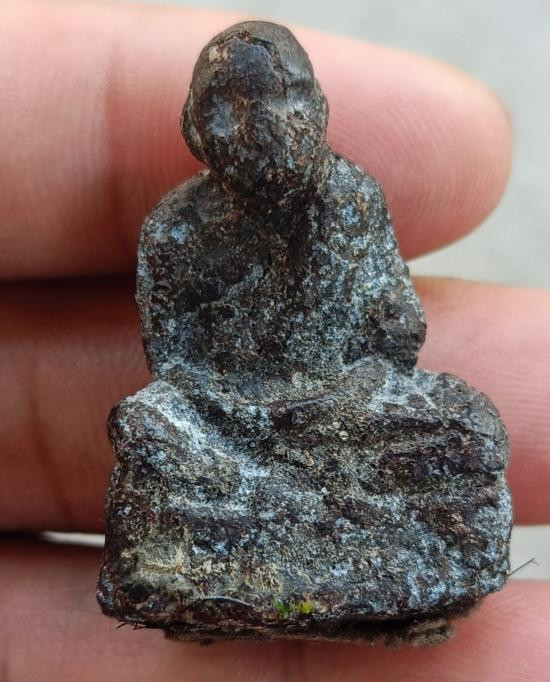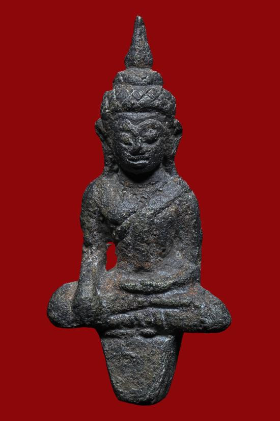พระท่ากระดาน หลังมีหลุม เนื้อตะกั่ว มีสนิมแดง ไม่ทราบที่ จ.กาญจนบุรี