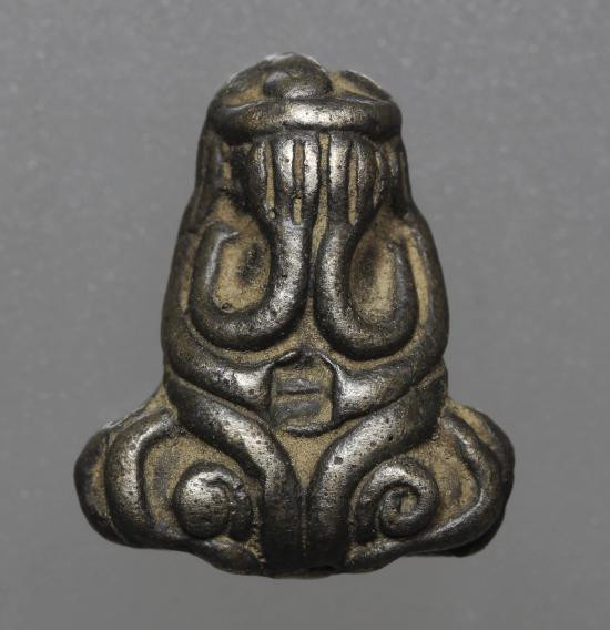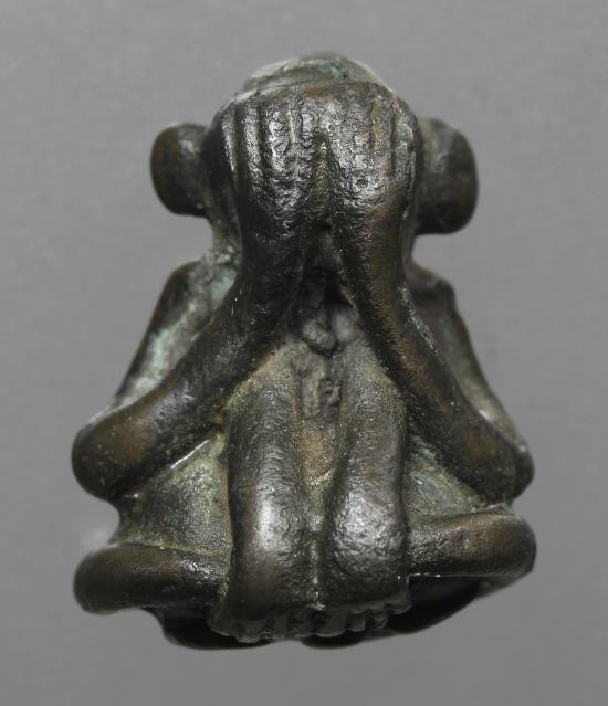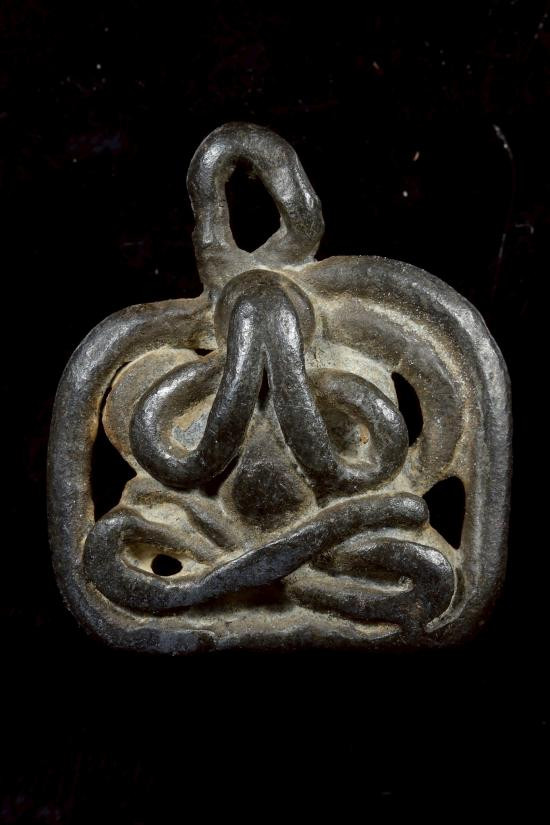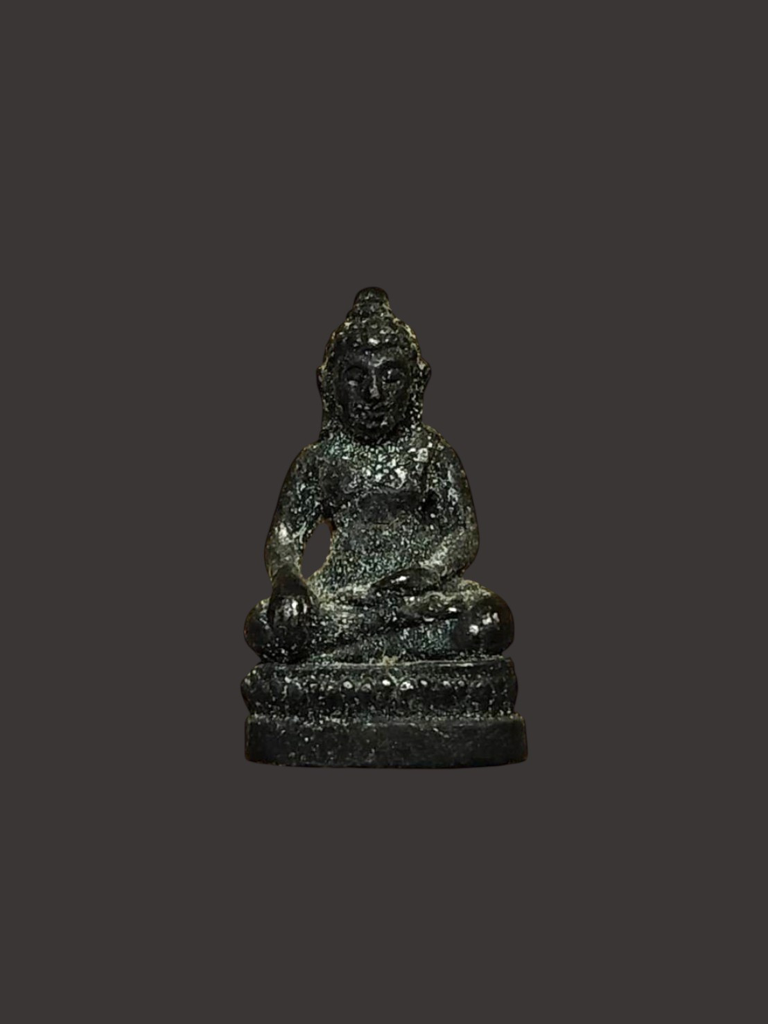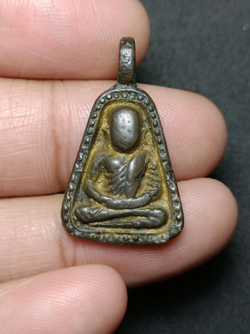 พระท่ากระดาน หลังมีหลุม เนื้อตะกั่ว มีสนิมแดง ไม่ทราบที่ จ.กาญจนบุรี