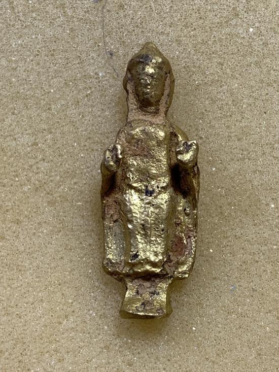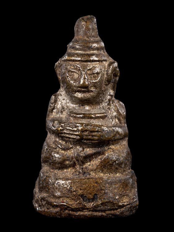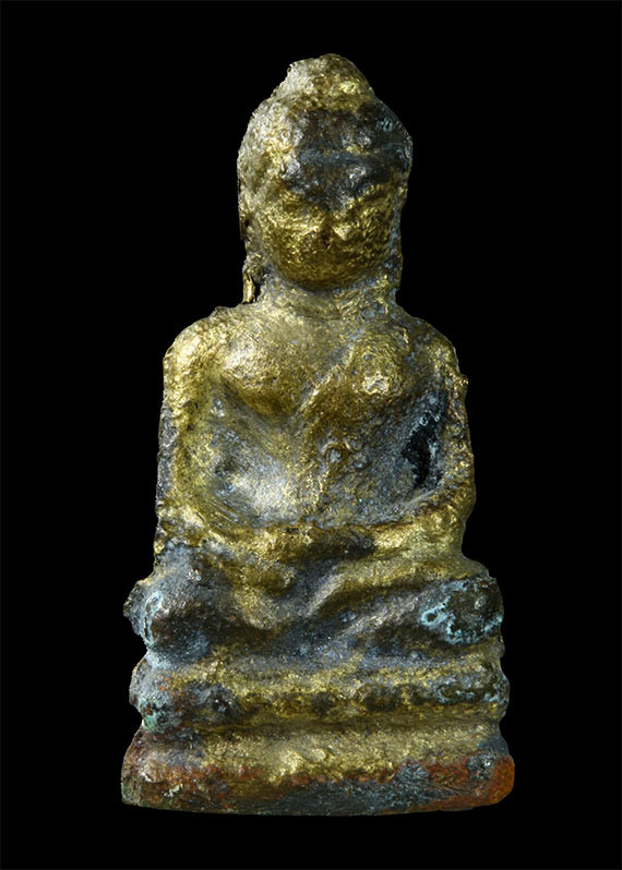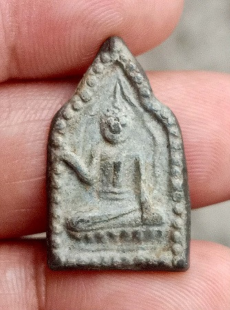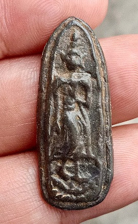 พระหล่อเนื้อชินตะกั่ว พิมพ์ท่ากระดานเล็ก ไม่ทราบที่ไม่ทราบรุ่น ขนาด 1.6 * 2.3 ซม |
