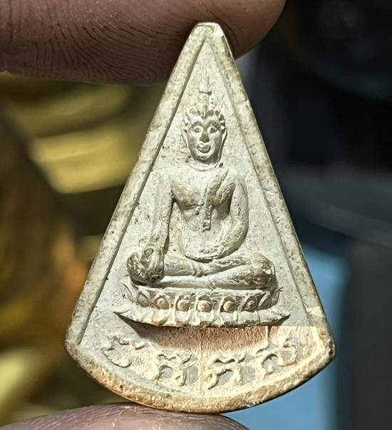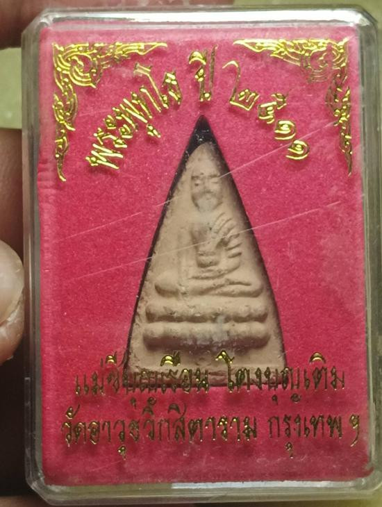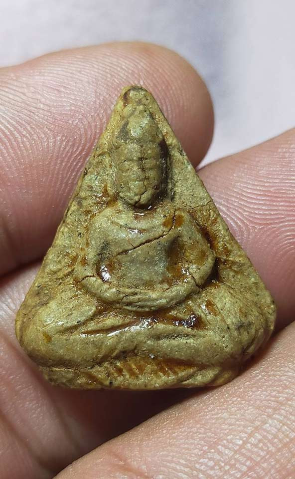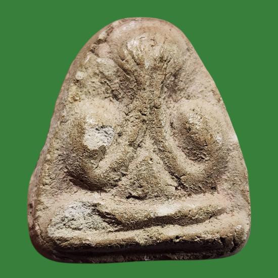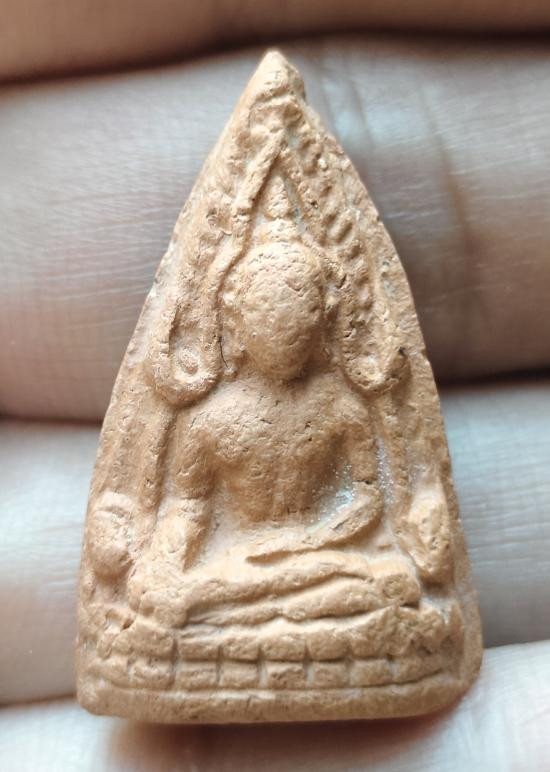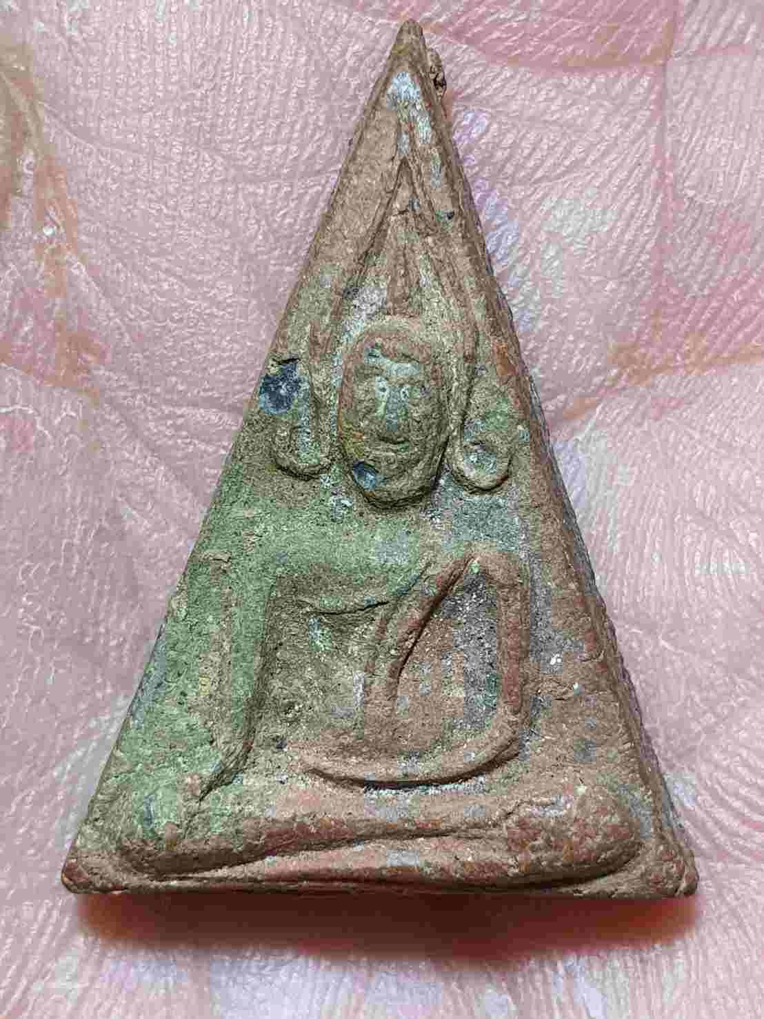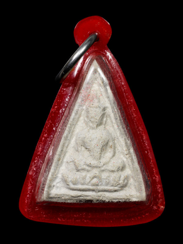 พระของขวัญรุ่น 4 พิมพ์สามเหลี่ยม ปี 2514 เนื้อผง วัดปากน้ำ กทม.(พร้อมบัตรรับรอง)