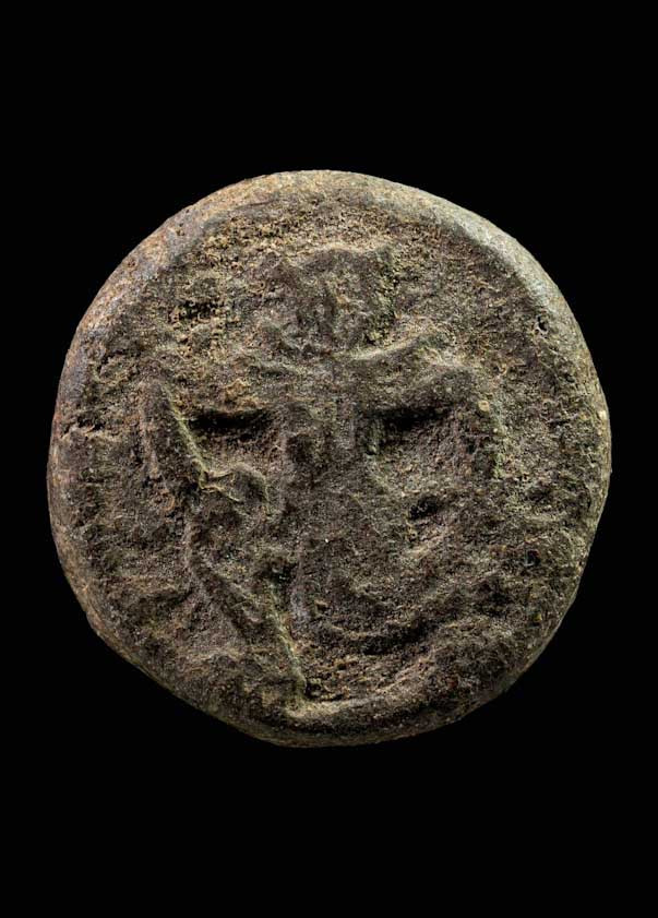 พระโพธิจักร หลวงพ่อลี วัดอโศการาม สมุทรปราการ พิมพ์ใบโพธิ์ เนื้อดิน ปี 2500 หน้าตาชัด ลายนิ้วมือชัด |