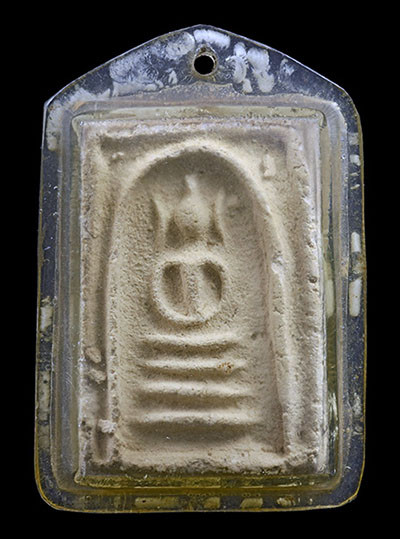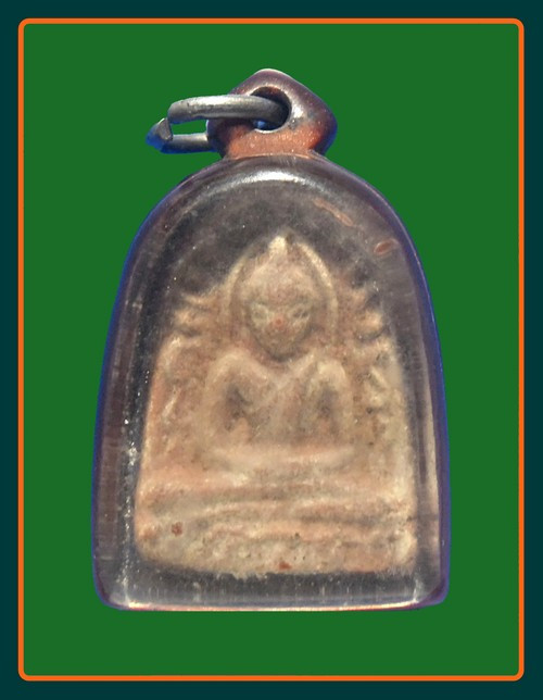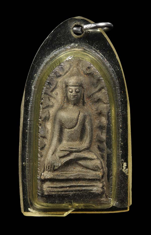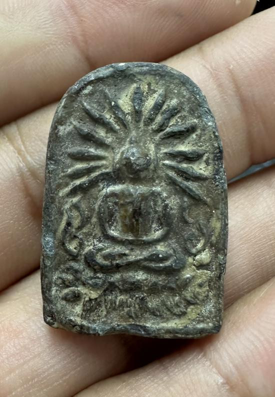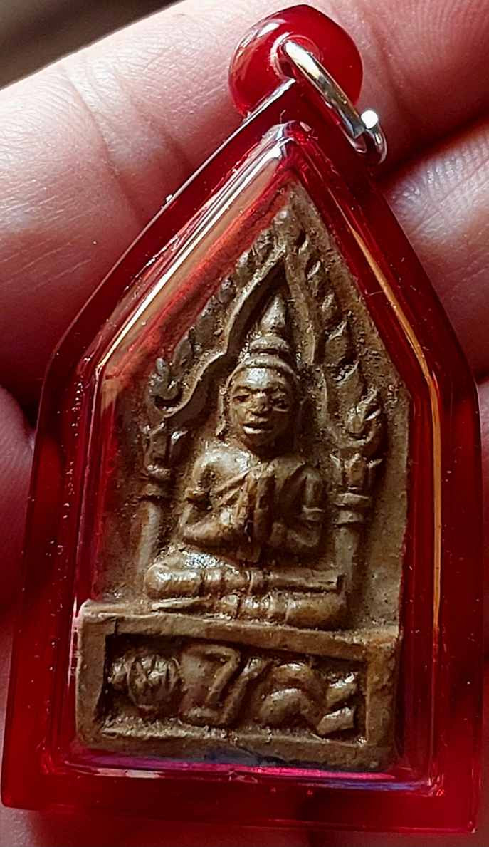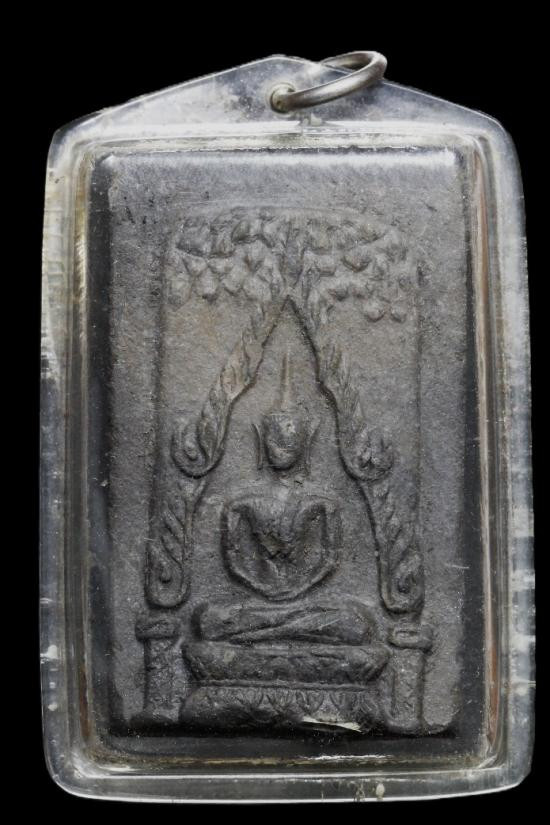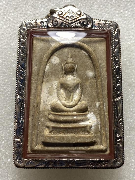 พระพิมพ์เล็บมือ ซุ้มชินราช ท่านเจ้าจุ้ย วัดสามปลื้ม กทม. ปี 2475 สภาพใช้สึกชำรุด เลี่ยมกรอบเงินโบราณ |