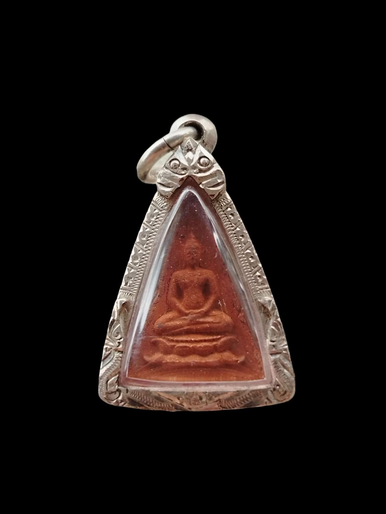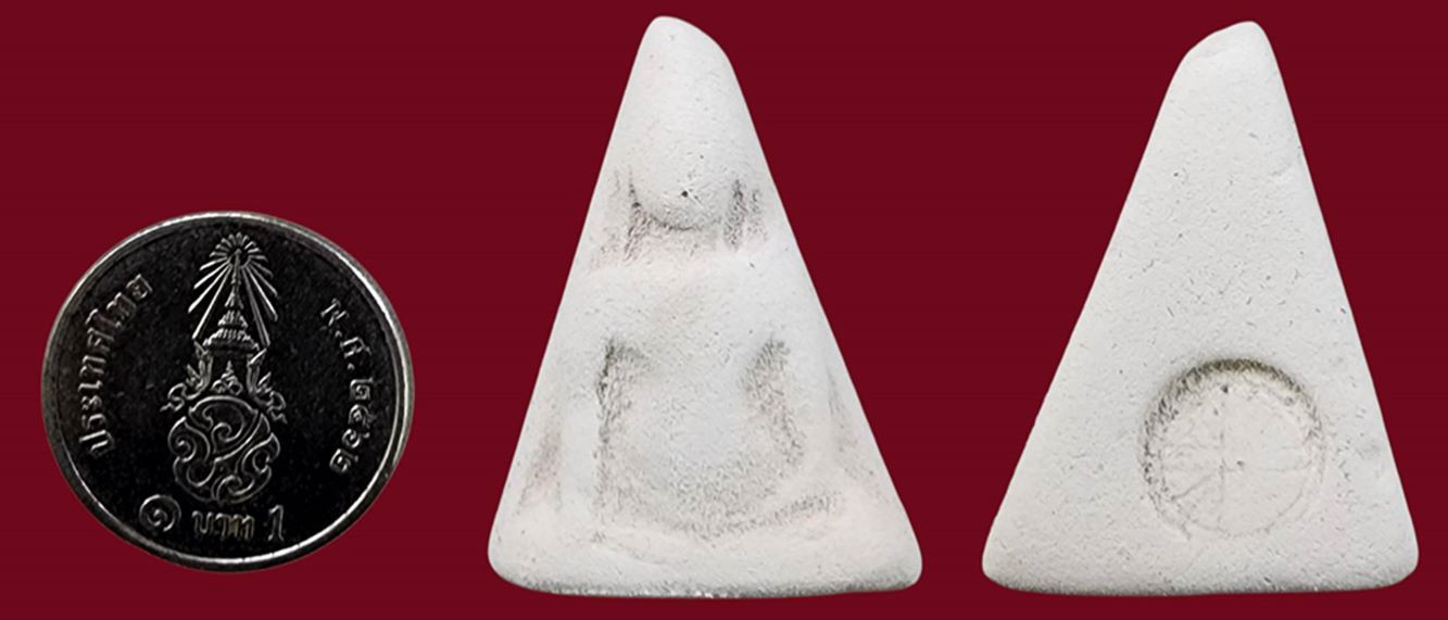 พระสมเด็จสามเหลี่ยมทรงหนุมานหลวงพ่อแฉ่งวัดบางพังจังหวัดนนทบุรีปี 2484 เนื้อดิน