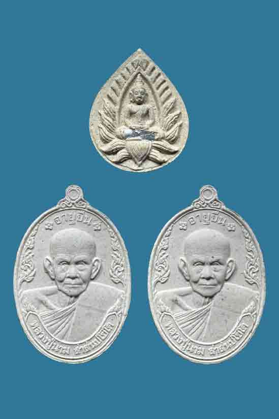 พระปทุมมาศ พระผงอายุยืน หลวงปู่นาม วัดน้อยชมภู่ จ.สุพรรณบุรี เนื้อผงพุทธคุณ