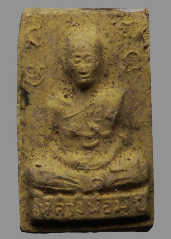 เคาะเดียวแดง พระผงรูปเหมือน ปี 2507 สีเหลืองขมิ้น หลังลายผ้า หลวงพ่อมุ่ย วัดดอนไร่ จ.สุพรรณบุรี |