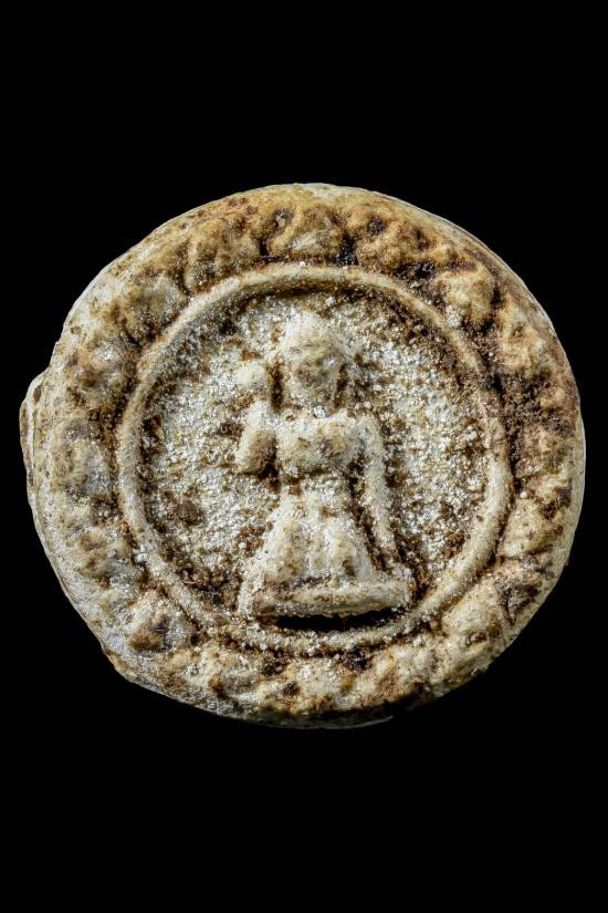 พระนางกวัก หลวงพ่อกวย วัดโฆสิตาราม ปี 2515 เนื้อผงว่านน้ำมัน พิมพ์เล็ก |