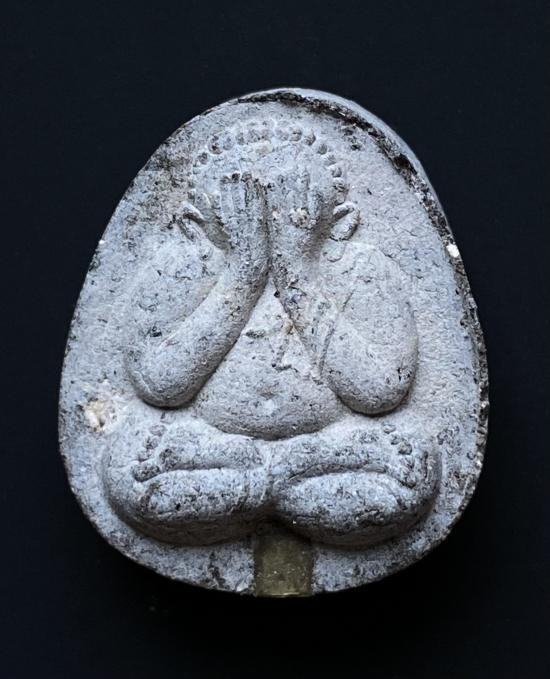 พระพุทธกวักสามเหลี่ยม อาจารย์ชุมไชยคีรี จ.พัทลุง ปี 2497 เนื้อผงใบราน หลังเรียบหายากครับ วัดใจขายทุกราคาจบเท่าไหนเอาเท่านั้นครับ |
