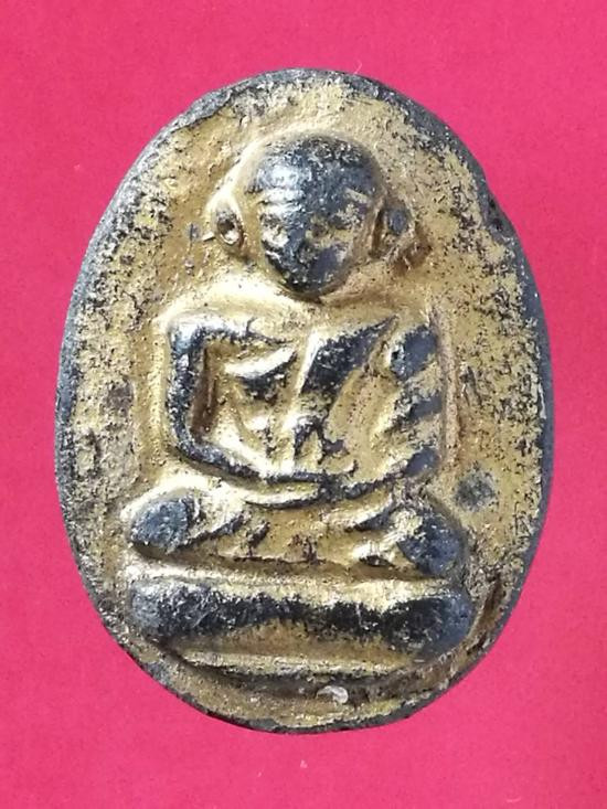 พระผงรูปเหมือน หลวงพ่อไปล่ วัดกำแพง กทม เนื้อผงผสมอัฐิปิดทอง |