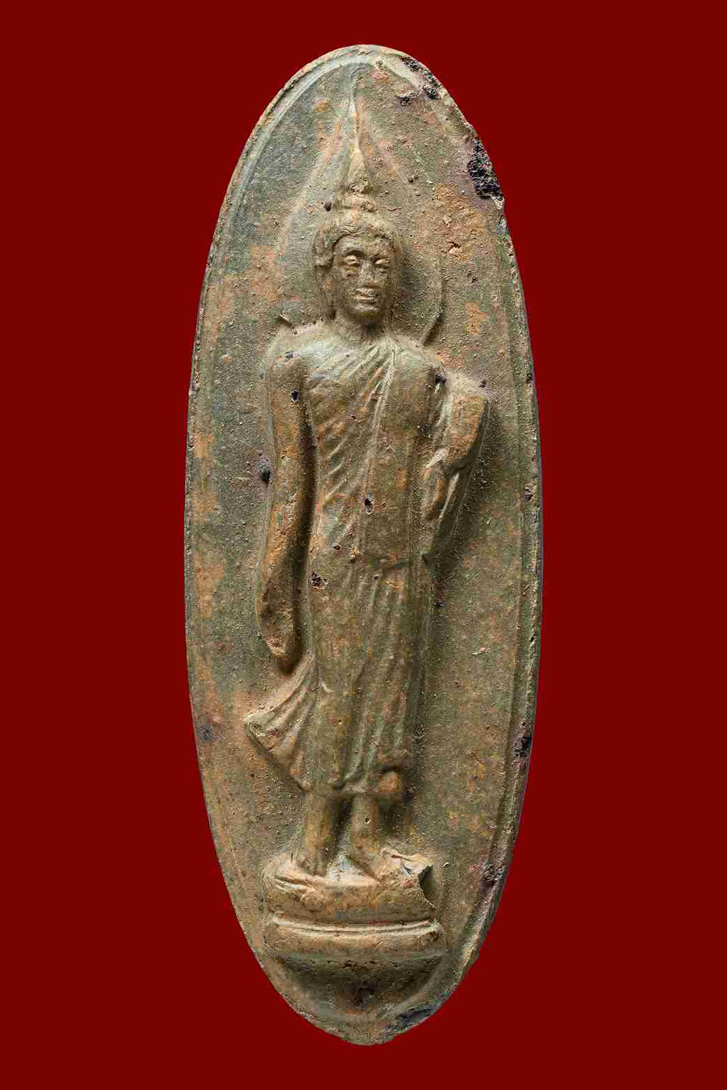 พระสังกัจจายน์ลอยองค์ หลวงพ่อกวย วัดโฆสิตาราม (วัดบ้านแค) เนื้อดินผสมผงว่านใบลาน อุดกริ่ง |