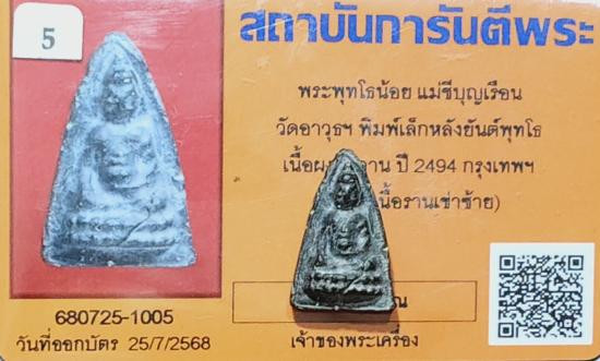 วัดใจเคาะเดียว พุทโธน้อยคุณแม่บุญเรือนเนื้อใบลานพิมพ์เล็กพร้อมบัตรรับรอง |