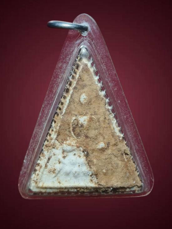 พระเนื้อดินพิมพ์ยอดขุนพลปรกโพธิ์ หลวงพ่อเต๋ วัดสามง่าม จ. นครปฐม พ.ศ.2507 ด้านหลังยันต์สามง่าม |