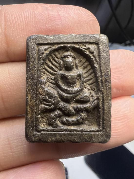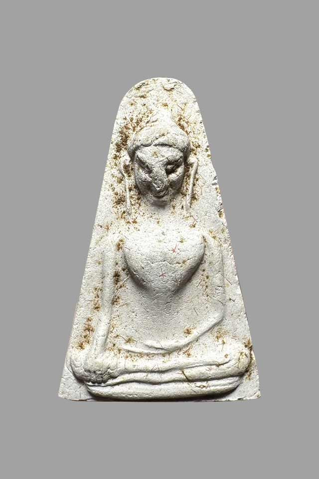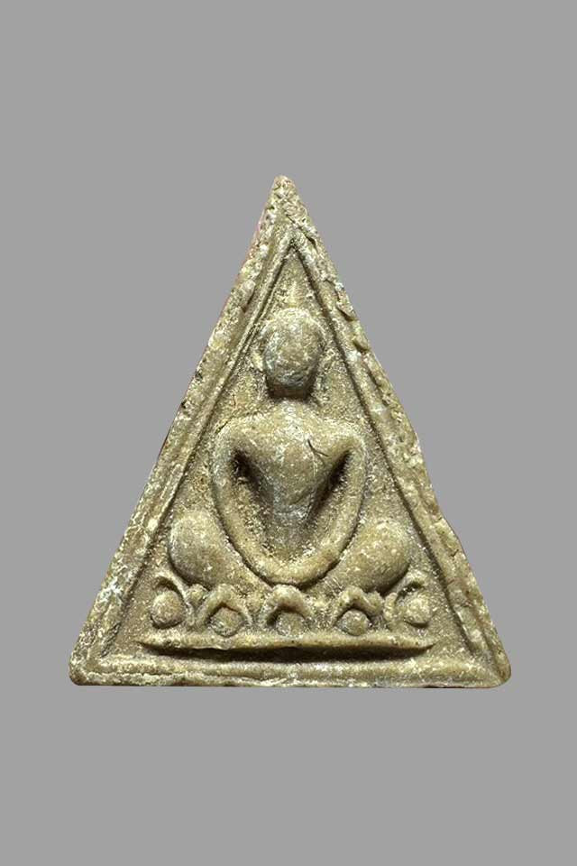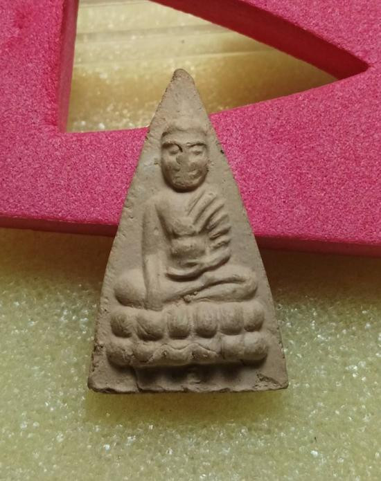 250.- พระพุทธกวัก สามเหลี่ยม หลังยันต์ เนื้อดินเผา อาจารย์ชุมไชยคีรี ปี 2497 พิธีวัดพระบรมธาตุ จ.นครศรีธรรมราช |