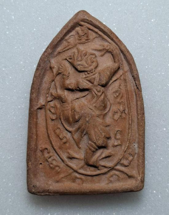 หนุมานหักศร หลวงปู่ตี๋ สำนักสงฆ์เขาเขียว เนื้อดิน หลังลายกระดาน หลวงพ่อกวย ปลุกเสก ปี2517 |
