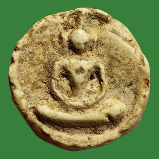 พระสิวลีหลังเรียบ เนื้อผงน้ำมัน วรรณะอมเขียว หลวงพ่อกวย วัดโฆสิตาราม ขนาดประมาณ 1.9*4.6 ซม |