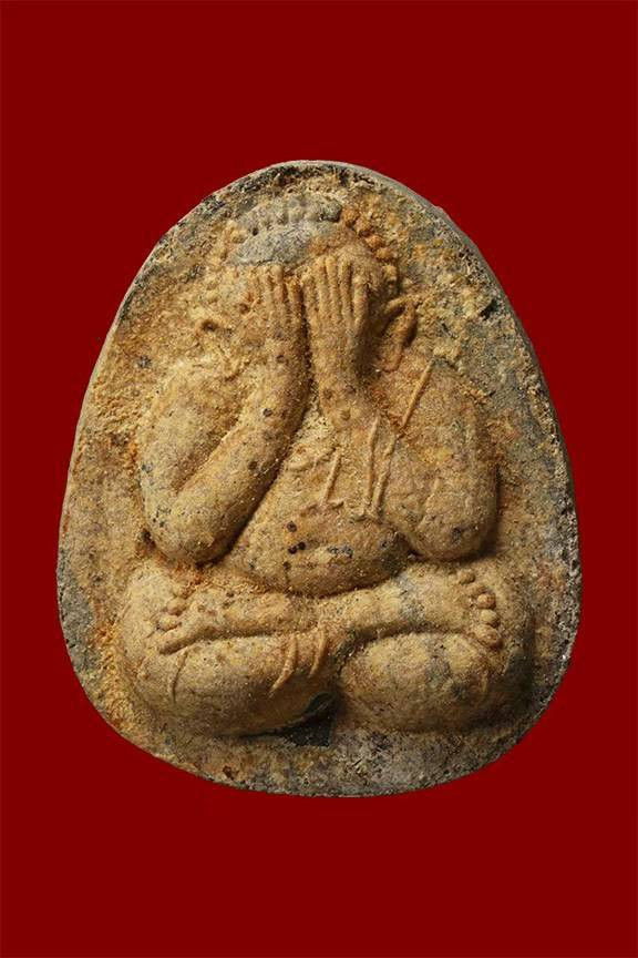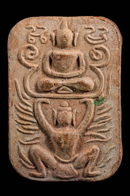 (วัดใจเริ่มต้น100ใจได้แค่ไหนแค่นั้น) พระพิมพ์พระพุทธเจ้าทรงครุฑ หลวงพ่อปาน เนื้อดินเผา อุดผงออกในปี 2527 เสกโดยหลวงพ่อฤาษีลิงดำ วัดท่าซุง |