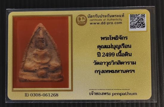 พระโพธิจักรแม่ชีบุญเรือน เนื้อดิน ปี2499 วัดอาวุธฯ กรุงเทพฯ+บัตร |