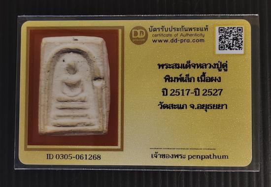 สมเด็จหลวงปู่ดู่ วัดสะแก จ.อยุธยา พิมพ์เล็ก เนื้อผง ปี2517-2527 + บัตร |