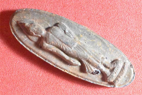 พระเนื้อดินข้างรัศมีทรงเสือ ก้นอุดผง ไม่ทราบที่ เคาะเดียว |