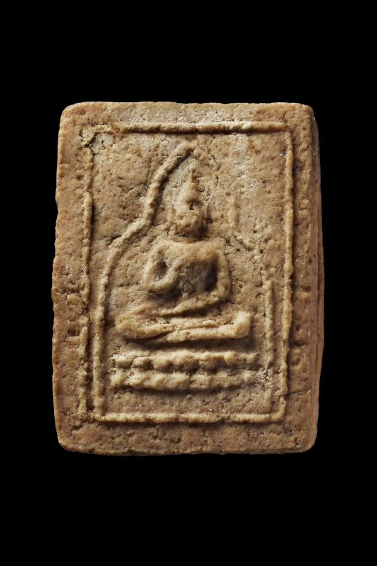 พระสมเด็จนะฤชา หลวงพ่อสำเนียง อยู่สถาพร วัดเวฬุวนาราม พิมพ์สี่เหลี่ยม เนื้อดิน ปี ๒๕๐๐ |